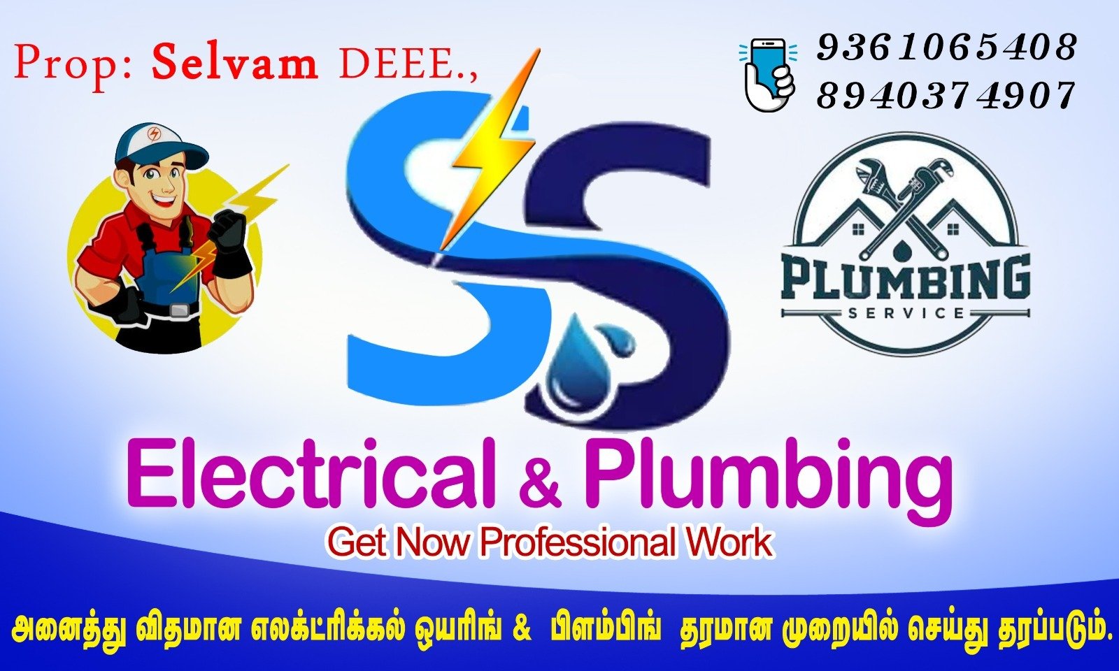 SS Electrical & Plumbing is promoted by Selvam at Tirumayam. We work hard to provide excellent customer service to all our clients.