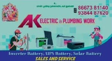AK Electric & Plumbing Work Works is promoted by V.Arunkumar at Srirangam.