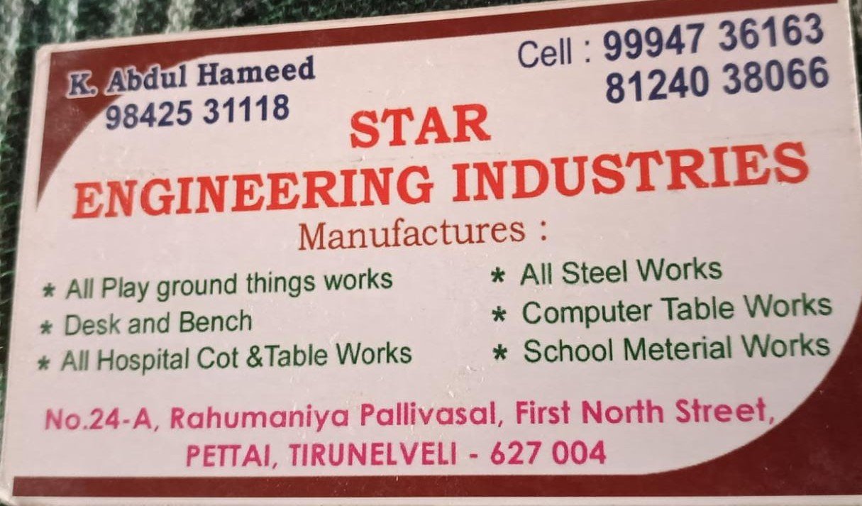 Star Engineering Industries is promoted by K.Abdul Hammed at Tirunelveli. We work hard to provide excellent customer service to all our clients.