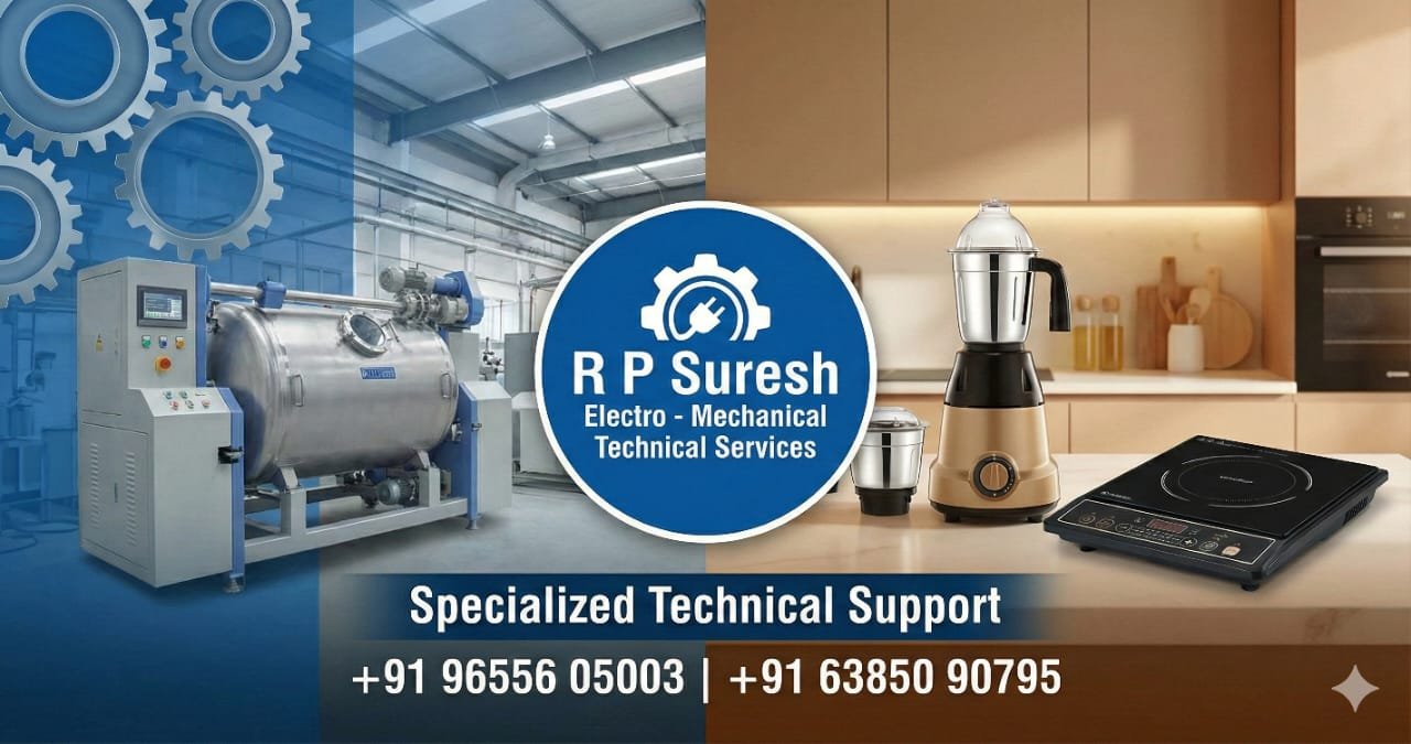 மிக்ஸி, குக்கர், டேபிள் ஃபேன், சீலிங் ஃபேன், இண்டக்ஷன் குக்கர், டேபிள் டாப் வெட் கிரைண்டர், வாட்டர் ஹீட்டர், அயர்ன் பாக்ஸ், வோல்டேஜ் ஸ்டேபிலைசர் ஆகிய அனைத்தும் சிறந்த முறையில் சர்வீஸ் செய்து தருகிறோம்.