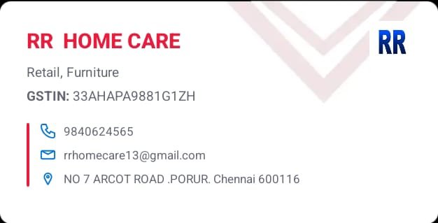 RR Home Care is promoted by M.Anand at Chennai. We work hard to provide excellent customer service to all our clients.