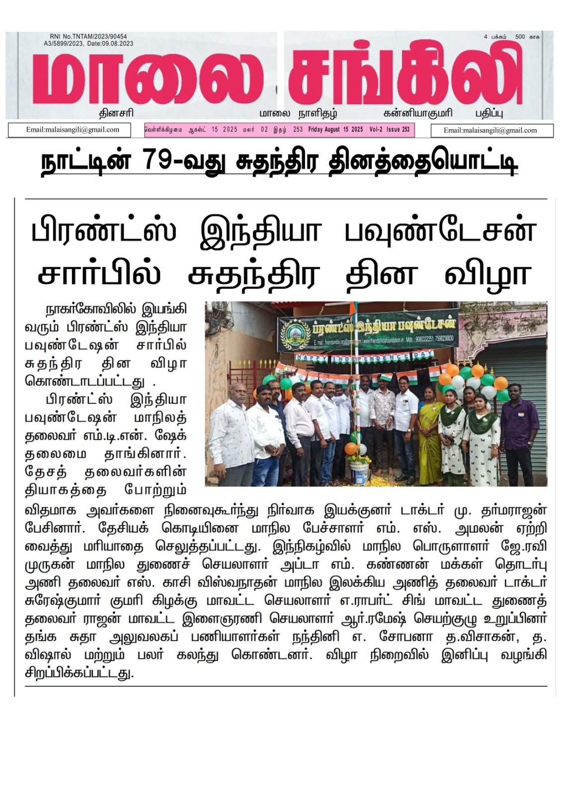 FRIENDS INDIA FOUNDATION is a Non-Governmental Organisation, registered in 2015, and based at Kanyakumari District, Tamil Nadu. The organisation is led by capable and committed people who have a strong vision for a better society.