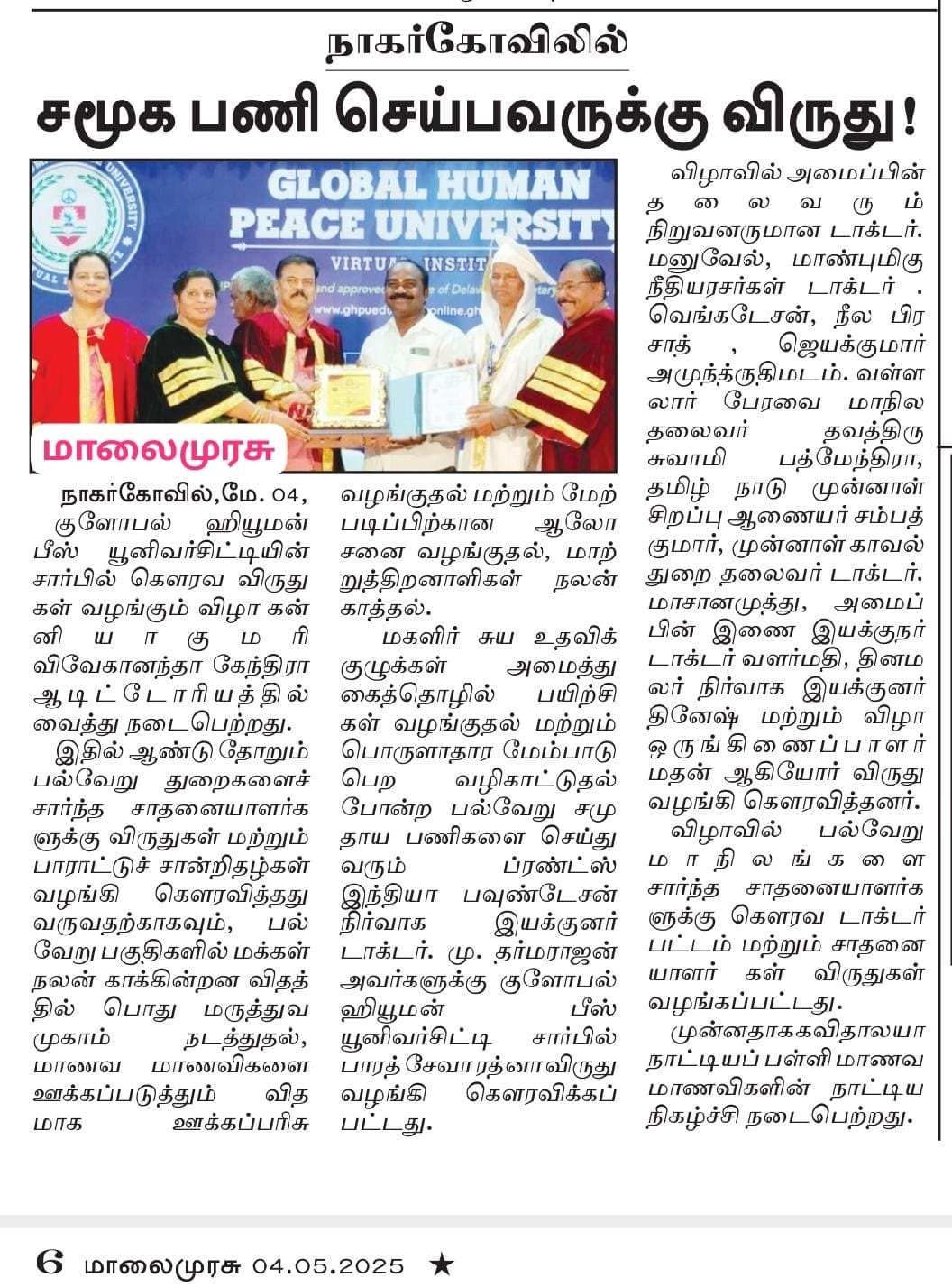 Shri Dr. M. THARMARAJAN M.A., is the Founder and Managing Trustee of Friends India Foundation. With over 40 years of grassroots service, he has dedicated his life to uplifting the most marginalized. Through Friends India Foundation, he has empowered more than 20,000 families through self-help groups, women’s livelihoods, and public health programs.