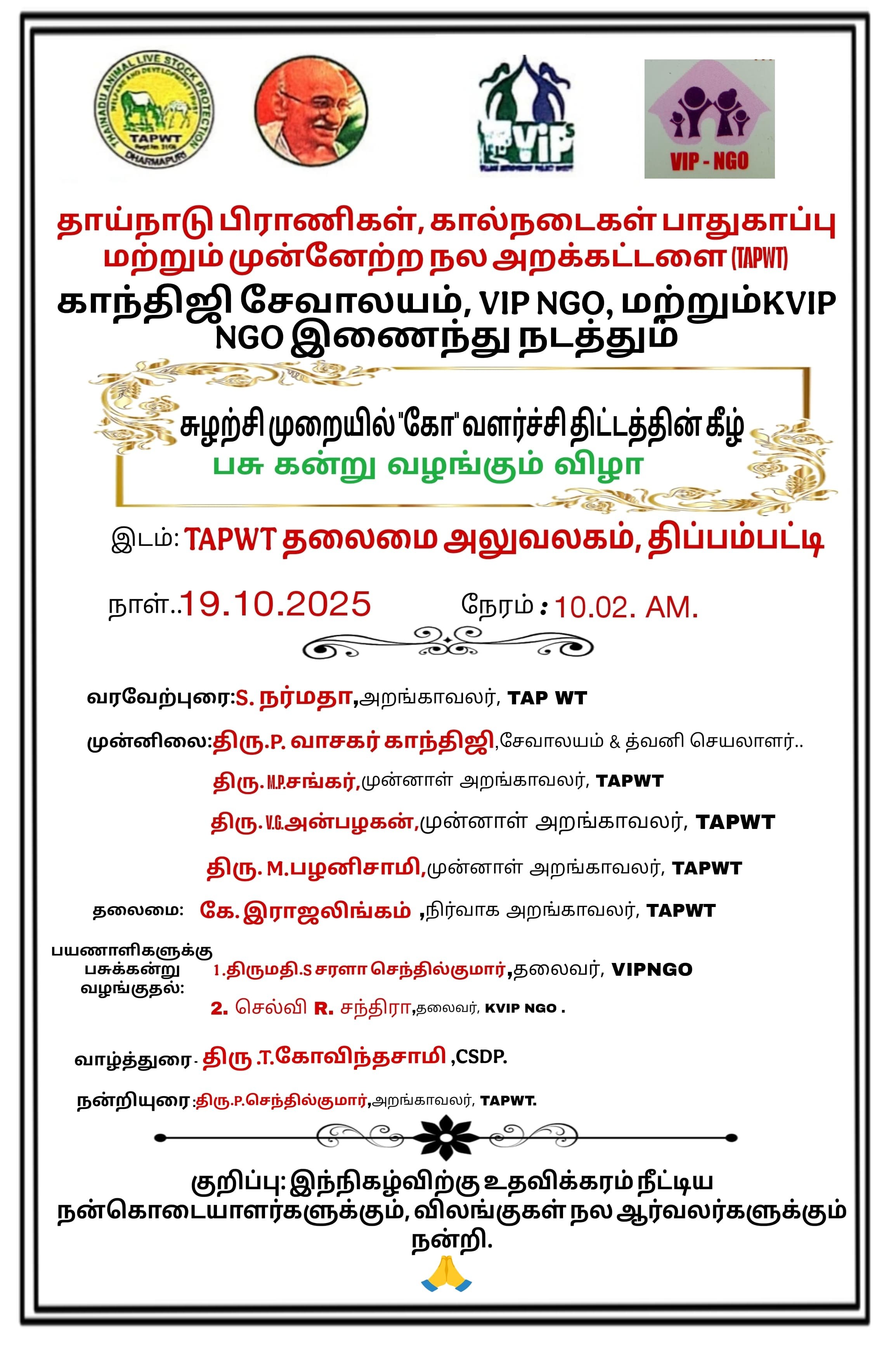 Thainadu Animal Live Stock Protection Welfare and Development Trust is promoted by K.Rajalingam at Dharmapuri. We strive to provide the best service to everyone.