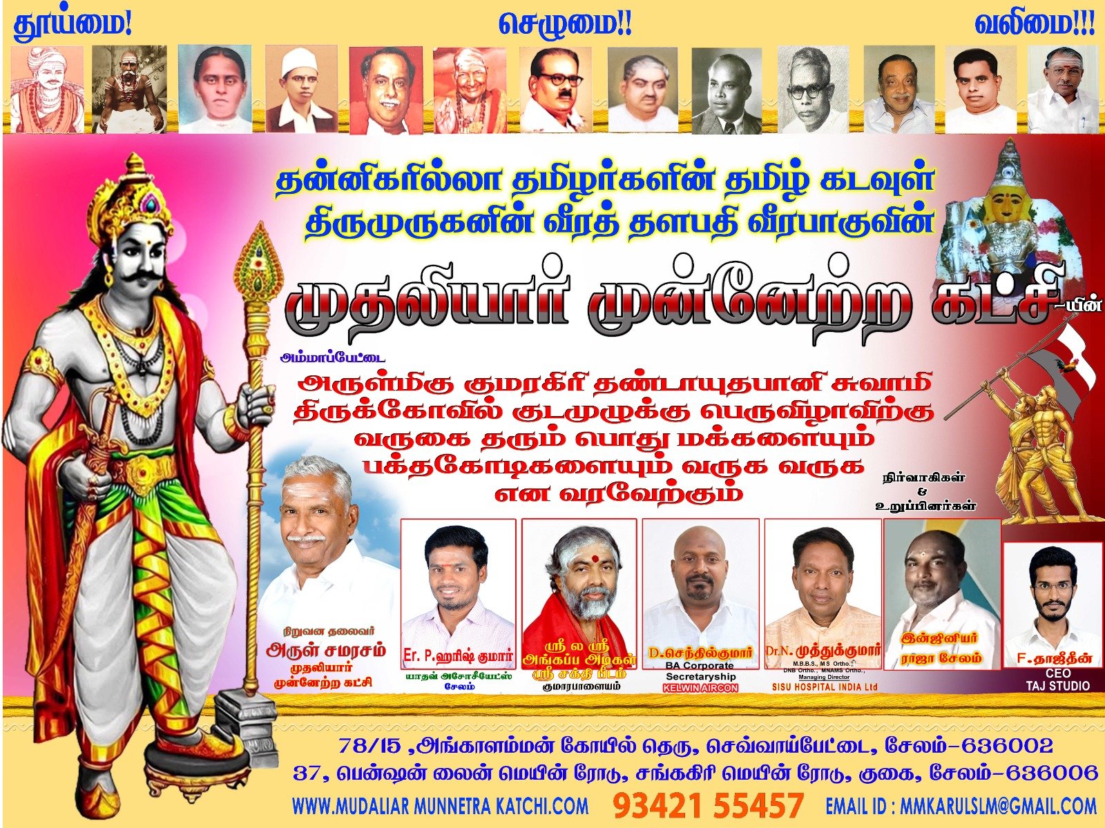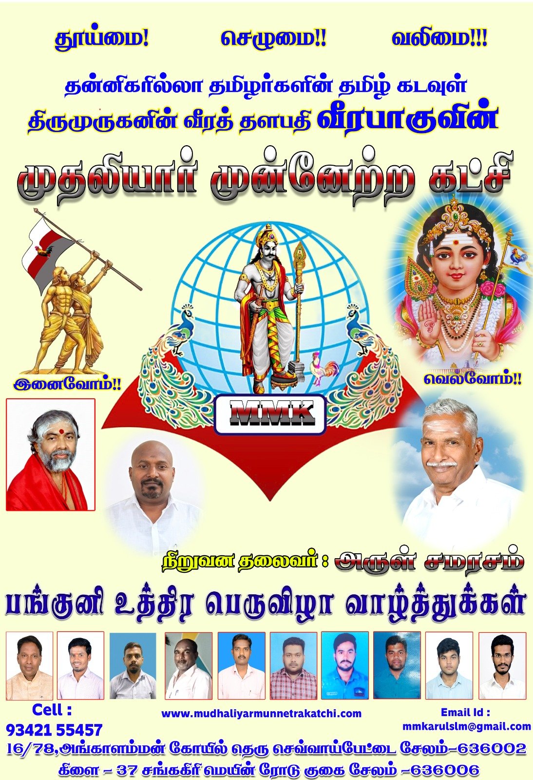 Mudhaliyar Munnetra Katchi is promoted by Mudaliyar Munnetra Katchi at Salem. We work hard to provide excellent customer service to all our clients.