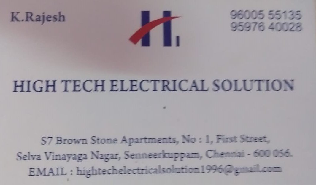 High Tech Electrical Solution is promoted by K.Rajesh at Chennai. We work hard to provide excellent customer service to all our clients.