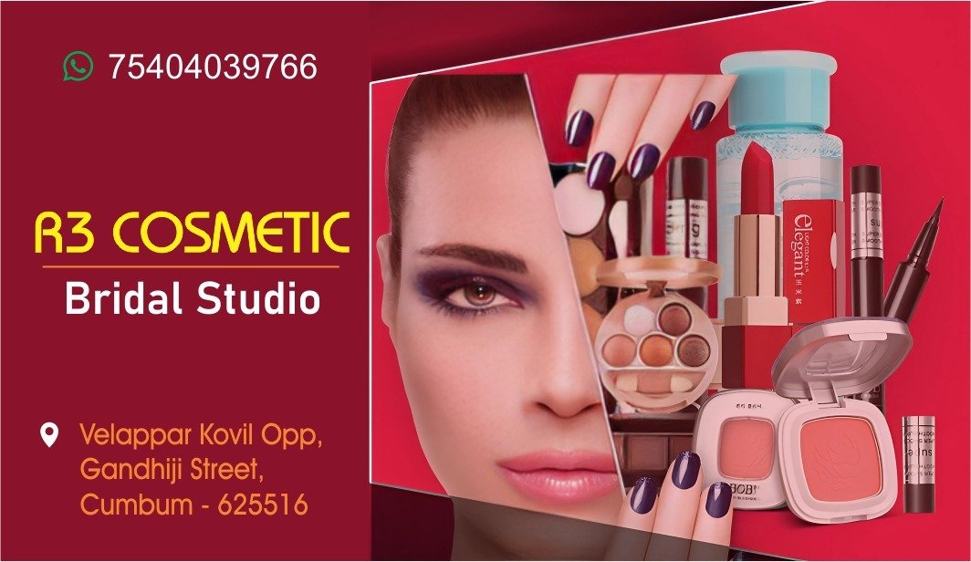 R3 Cosmetic Bridal Studio is located in Cumbum. We work hard to provide excellent customer service to all our clients.