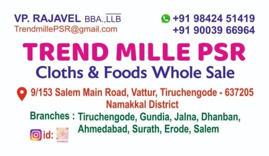 Trend Mille PSR – Wholesale South & North Indian Goods in Tiruchengode!