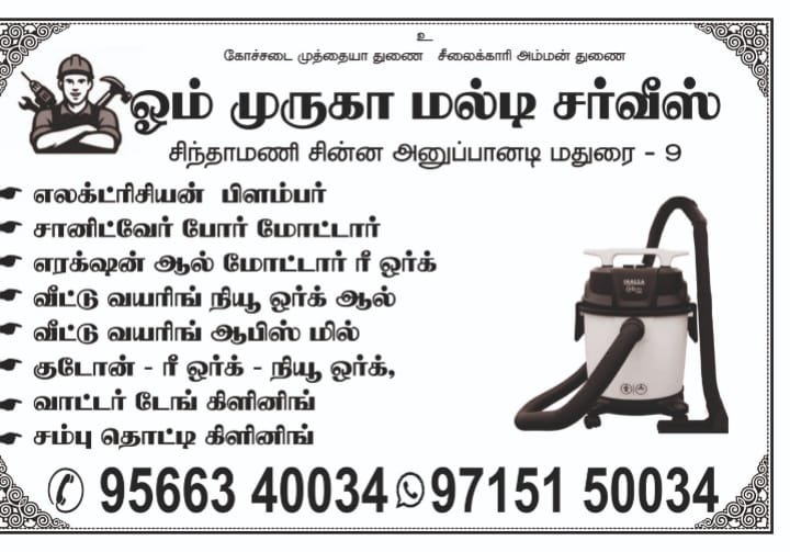 Om Muruga Multi Service is promoted by Murugan at Madurai. We work hard to provide excellent customer service to all our clients.