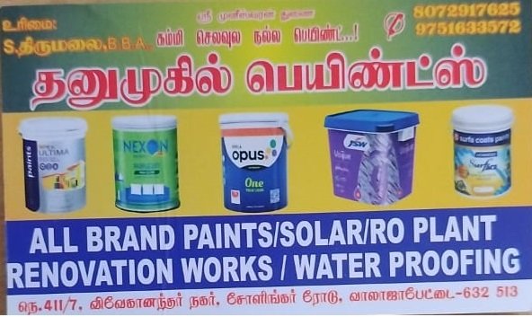 Thanumugil Paints is promoted by S.Thirumalai at Walajabad. We work hard to provide excellent customer service to all our clients.