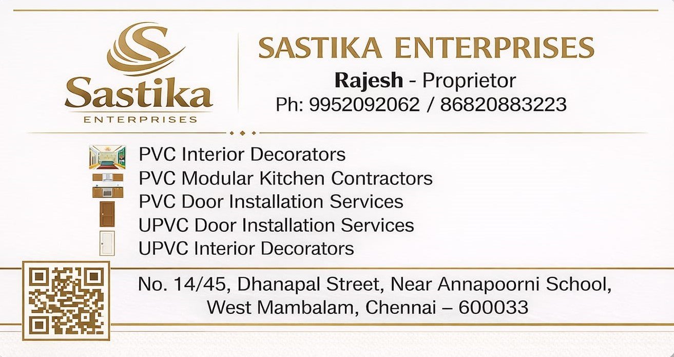 Sastika Enterprises is promoted by Rajesh at Chennai. We work hard to provide excellent customer service to all our clients.