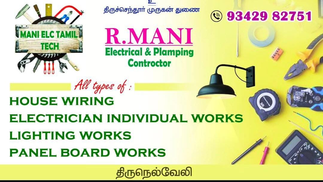 R.Mani Electrical & Plumbing Contractor is promoted by R.Mani at Tirunelveli. We work hard to provide excellent customer service to all our clients.