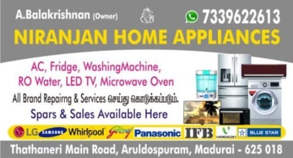 Niranjan Home Appliances is promoted by A.Balakrishnan at Madurai. We work hard to provide excellent customer service to all our clients.
