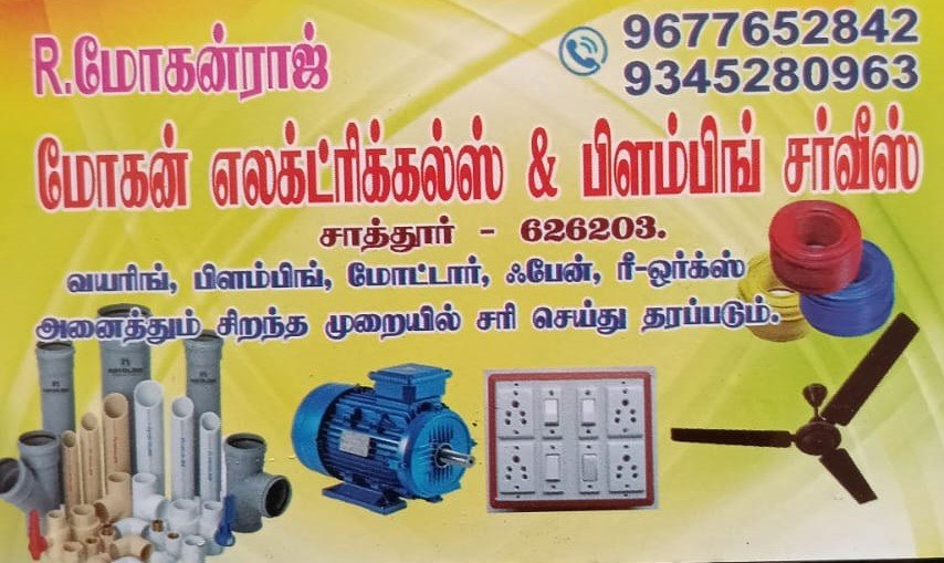 Mohan Electricals & Plumbing Service is promoted by R.Mohanraj at Sattur. We work hard to provide excellent customer service to all our clients.