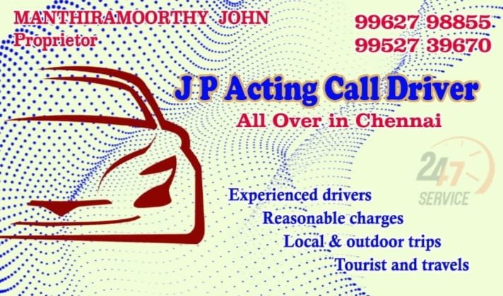 Welcome to J P Acting Call Driver, your trusted destination for professional and affordable call driver services in Chennai. Whether you need a driver for local trips, long-distance travel, or tourist journeys, we provide safe, reliable, and cost-effective solutions tailored to your needs.