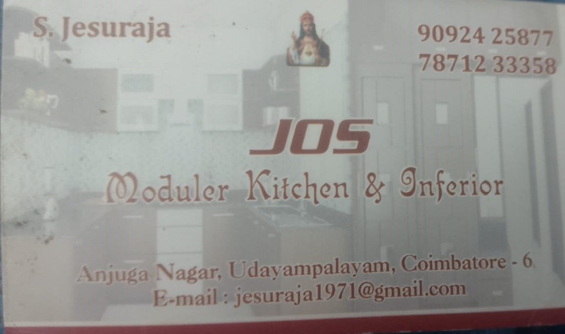 Jos Modular Kitchen & Interior is promoted by S.Jesuraja at Coimbatore. We work hard to provide excellent customer service to all our clients.