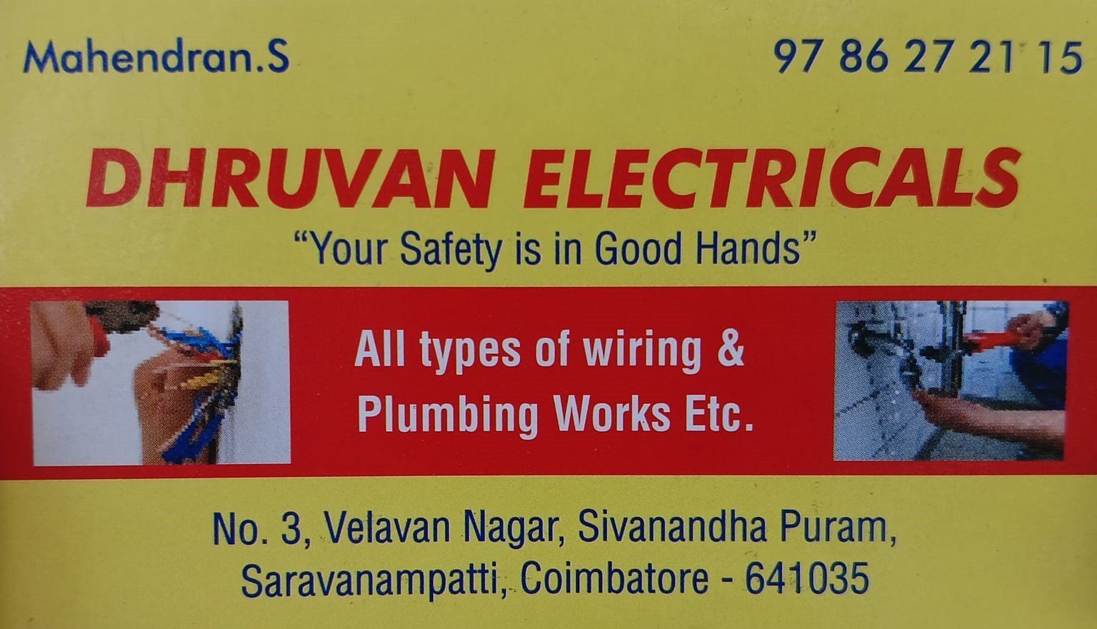 Dhruvan Electricals is promoted by S. Mahendren at Coimbatore. We work hard to provide excellent customer service to all our clients.