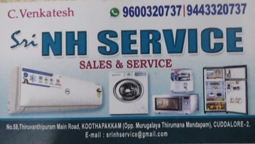 Welcome to Sri NH Service Sales & Service, Cuddalore’s trusted experts for Home Appliance Sales and Services!