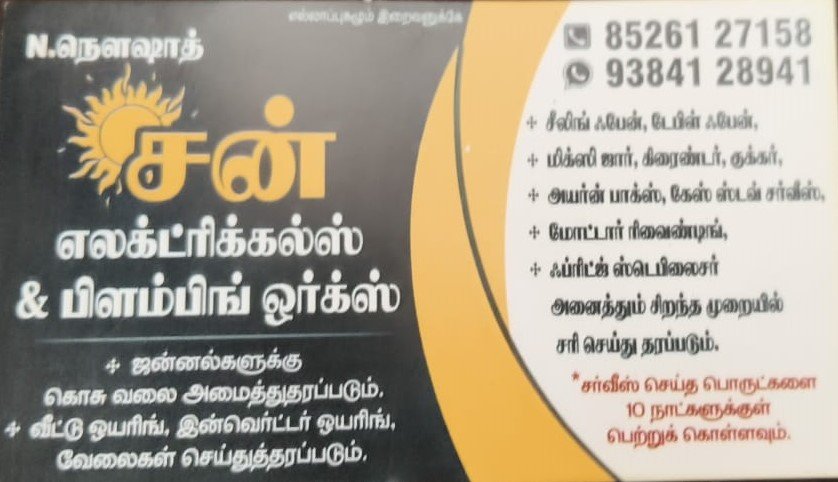Sun Electricals & Plumbing is promoted by N.Nouzath at Trichy. We work hard to provide excellent customer service to all our clients.