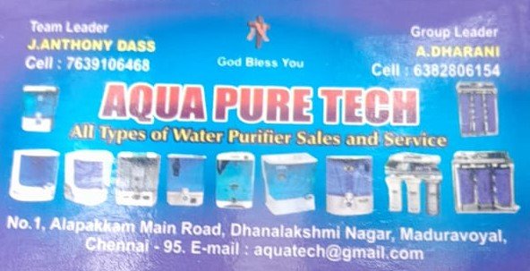 Aqua Pure Tech is promoted by Antonydass at Chennai. We work hard to provide excellent customer service to all our clients.
