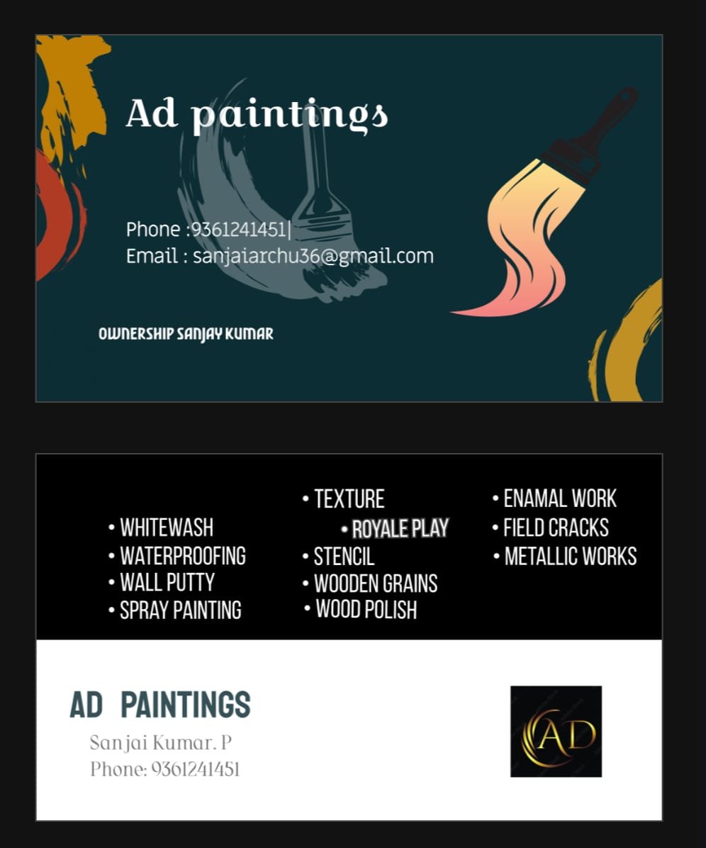 AD Painting Studio is promoted by Sanjai at Sivaganga . We work hard to provide excellent customer service to all our clients.