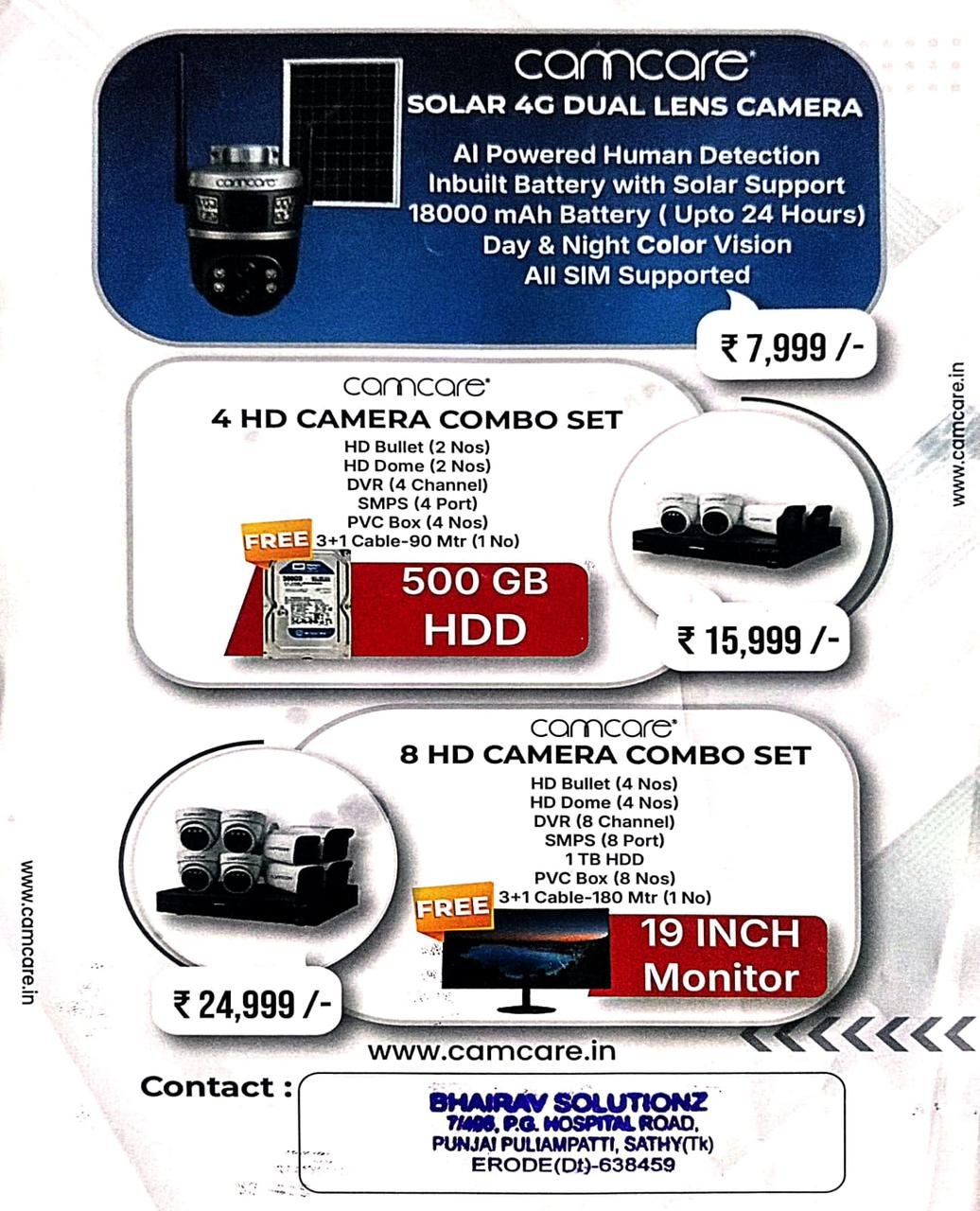 - கேம்கேர் சோலார் 4G டூயல் லென்ஸ் கேமரா