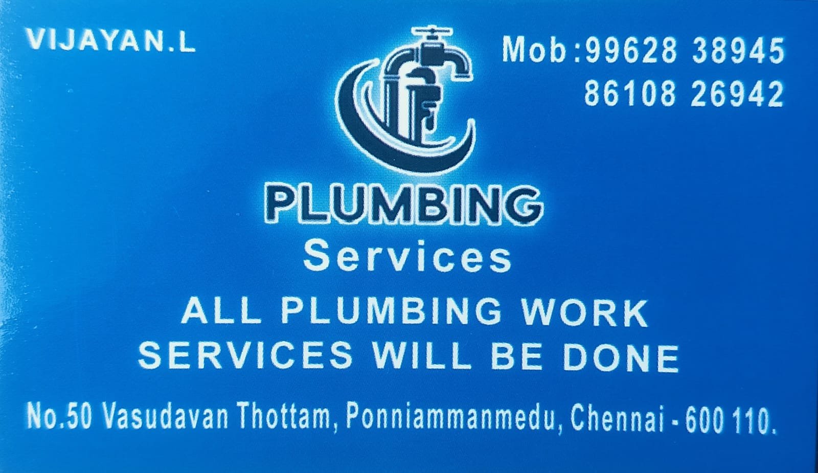 Vijayan Plumbing Services is promoted by L.Vijayan at Chennai. We work hard to provide excellent customer service to all our clients.
