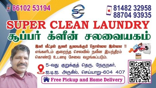 சூப்பர் கிளீன் சலவையகத்திற்கு உங்களை வரவேற்கிறோம்!இனி வீட்டில் துணி துவைக்கும் தொல்லை இல்லை!