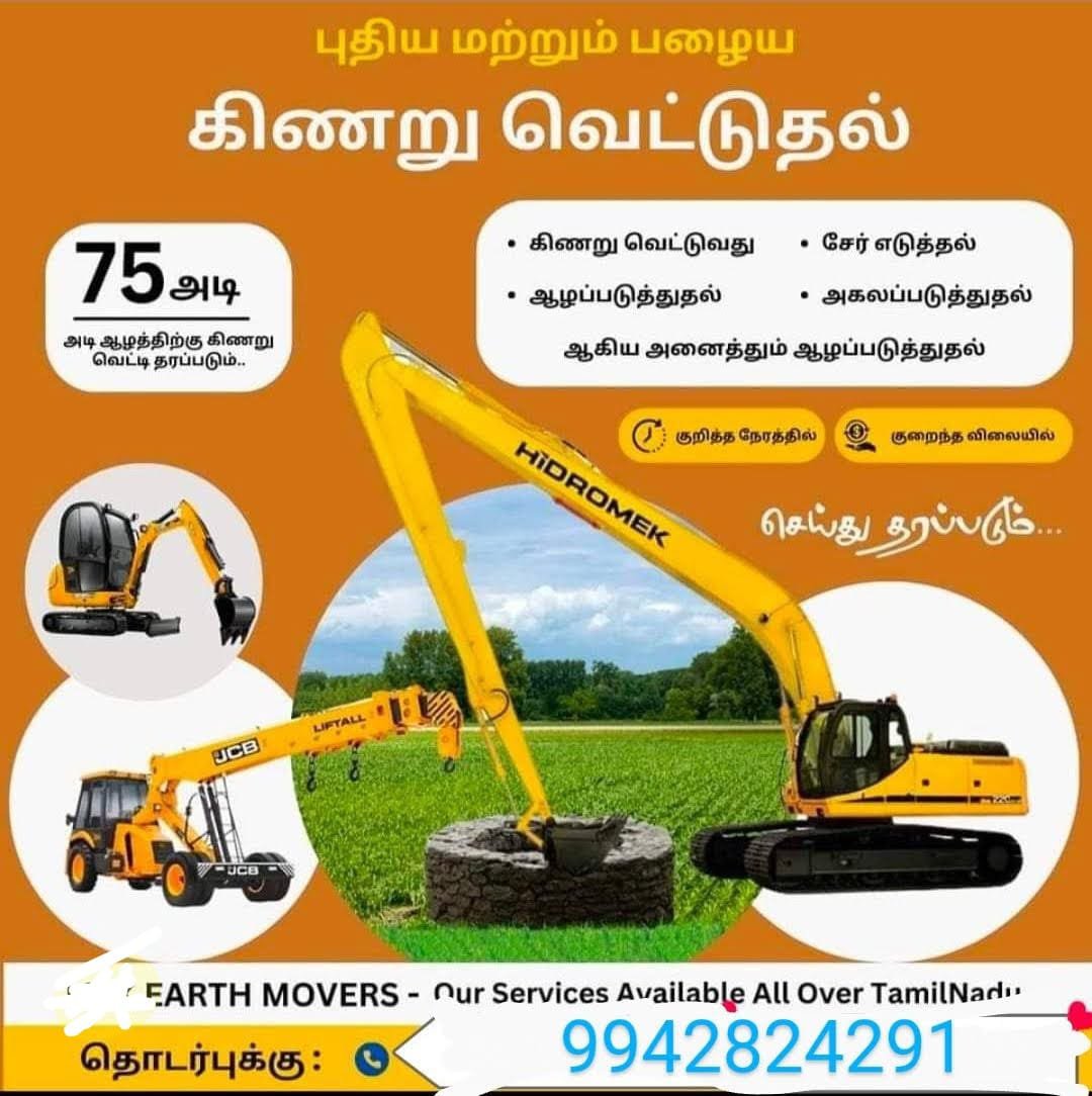 Narayanan Earth Movers-க்கு உங்களை வரவேற்கிறோம்!எங்களிடம் புதிய கிணறு வெட்டுதல், பழைய கிணறு துருவருத்தல், சேர் எடுத்தல், ஆழப்படுத்துதல், அகலப்படுத்துல் உள்ளிட்ட அனைத்து வகையான எர்த் மோவிங் வேலைகளும் குறித்த நேரத்தில் குறைந்த விலையில் செய்து தரப்படும்.