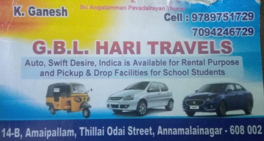 GBL Hari Travels is promoted by K.Ganesh at Annamalainagar. We work hard to provide excellent customer service to all our clients.