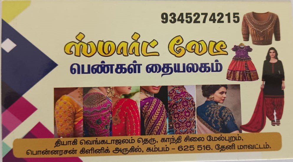 கம்பம்பத்தில் சுடிதார் மற்றும் டிசைனர் ப்ளௌஸ் ஸ்பெஷலிஸ்ட் ஸ்மார்ட் லேடி பெண்கள் தையலகத்திற்கு உங்களை வரவேற்கிறோம்!