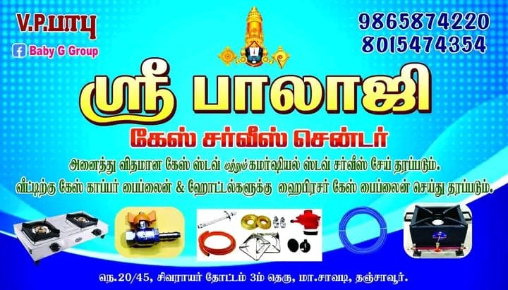 Sri Balaji Gas Service Center is promoted by V.P.Babu at Thanjavur. We work hard to provide excellent customer service to all our clients.