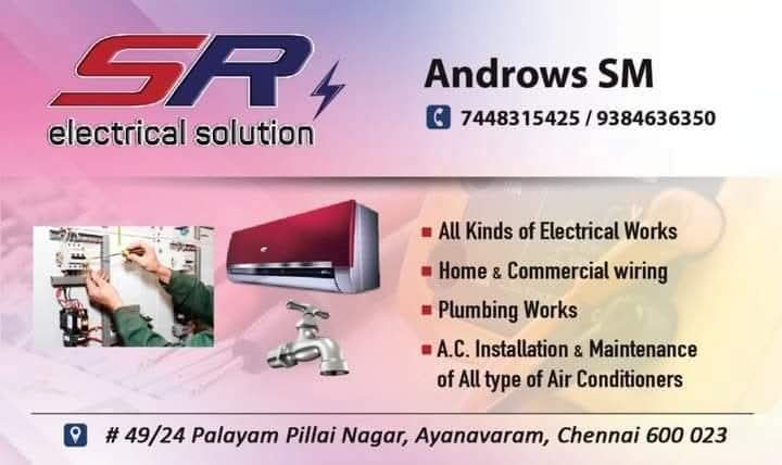SR Electrical Solution is promoted by SM.Androws at Chennai. We work hard to provide excellent customer service to all our clients.