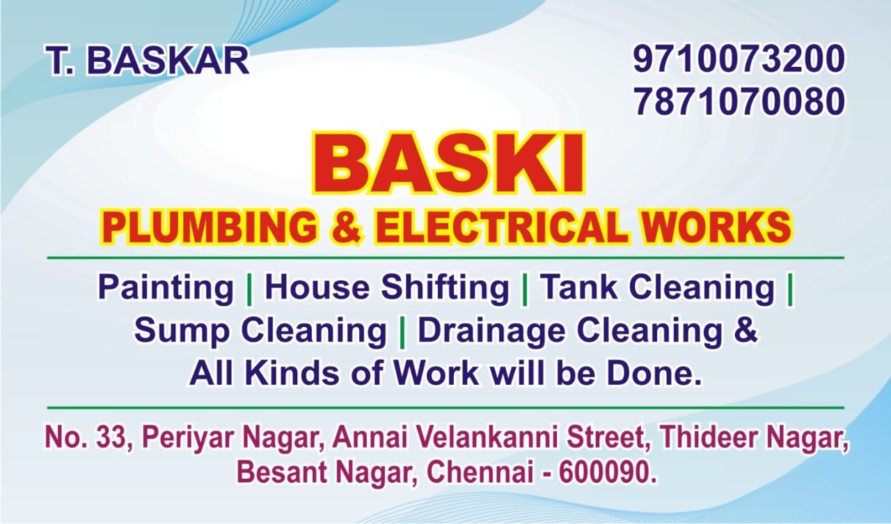 Baski Plumbing & Electrical Works is promoted by T.Baskar at Chennai. We work hard to provide excellent customer service to all our clients.