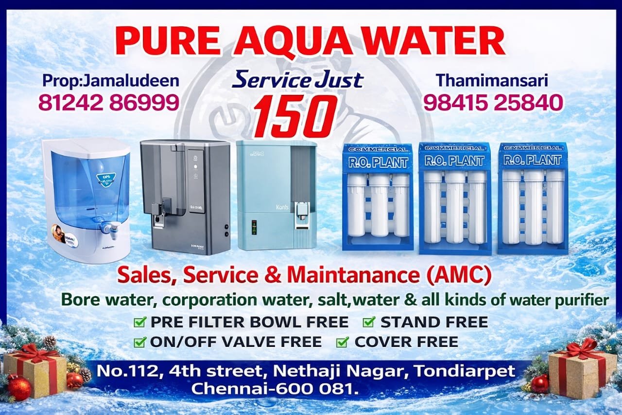 At Thamimansari Pure Aqua Water, we believe that clean, safe water is the foundation of a healthy life. With our door-to-door RO services, we ensure that every drop reaching your family is pure, refreshing, and of the highest standard. Our skilled technicians bring expertise and care to every visit, making customer satisfaction our hallmark.