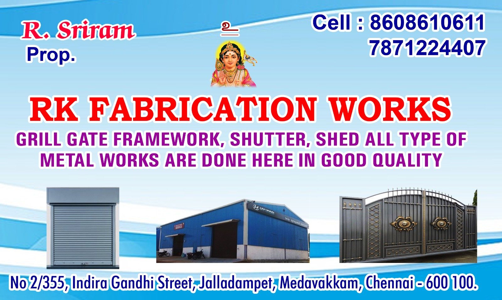 RK Fabrication Works is promoted by R.Sriram at Chennai. We work hard to provide excellent customer service to all our clients.