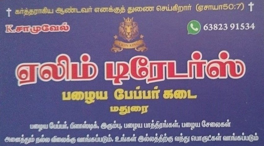 Elim Traders is promoted by K.Samuel at Madurai. We work hard to provide excellent customer service to all our clients.