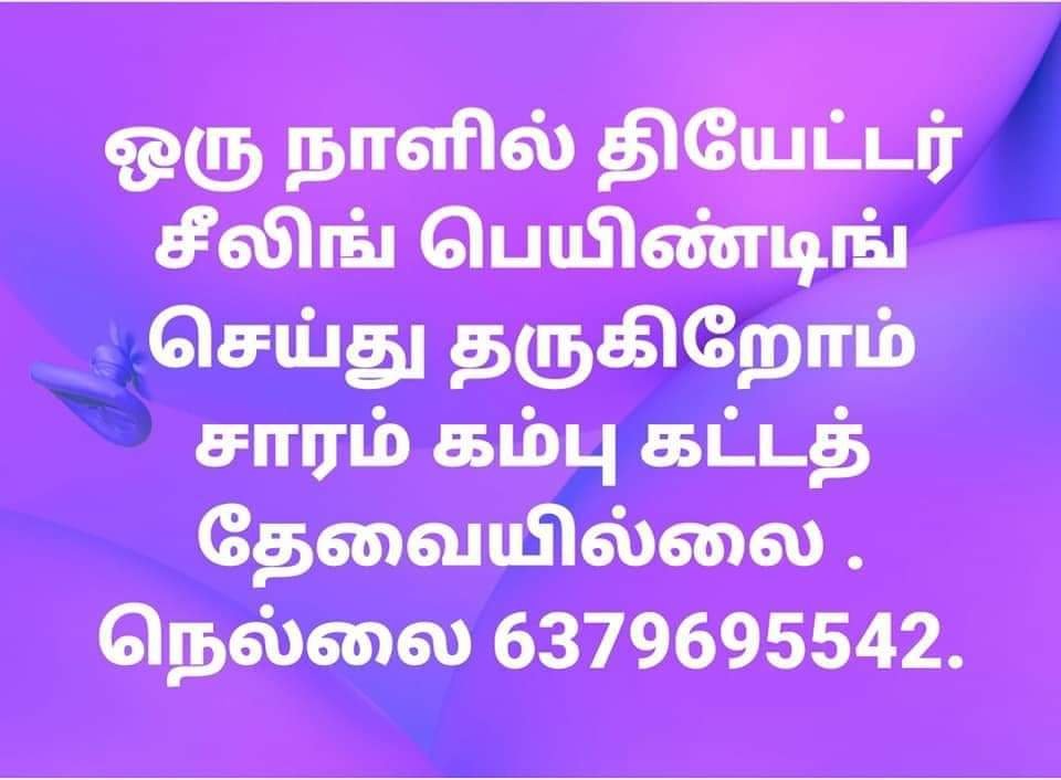 எங்களின் தனிசிறப்பு சாரம் கம்பு கட்டாமலே ஒரே நாளில் தியேட்டர் சீலிங் பெயிண்டிங் சிறந்த முறையில் செய்து தரப்படும்.