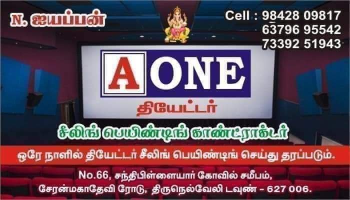 A ONE Theatre Ceiling Painting Contractor is promoted by N.Ayyappan at Tirunelveli. We work hard to provide excellent customer service to all our clients.