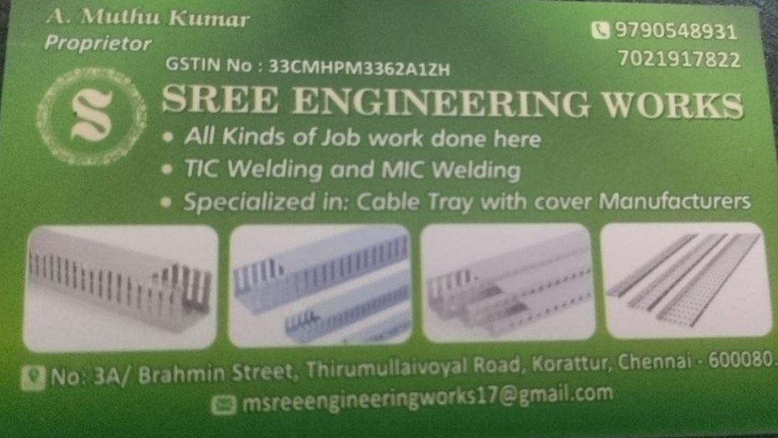 Sree Engineering Works is promoted by A.Muthu Kumar at Chennai. We work hard to provide excellent customer service to all our clients.
