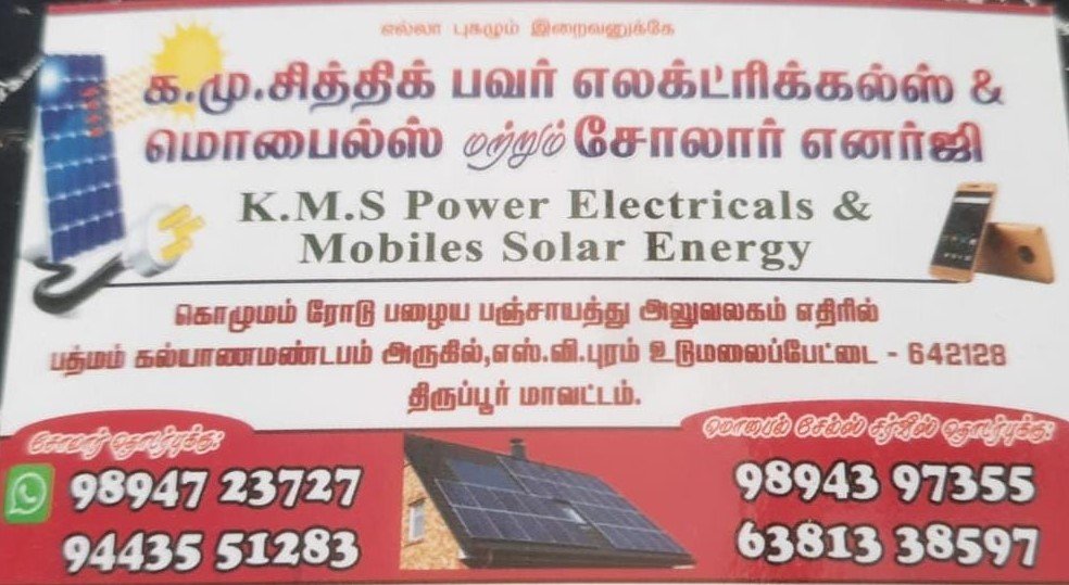 KMS Power Electrical is promoted by KMS at Tirupur. We work hard to provide excellent customer service to all our clients.