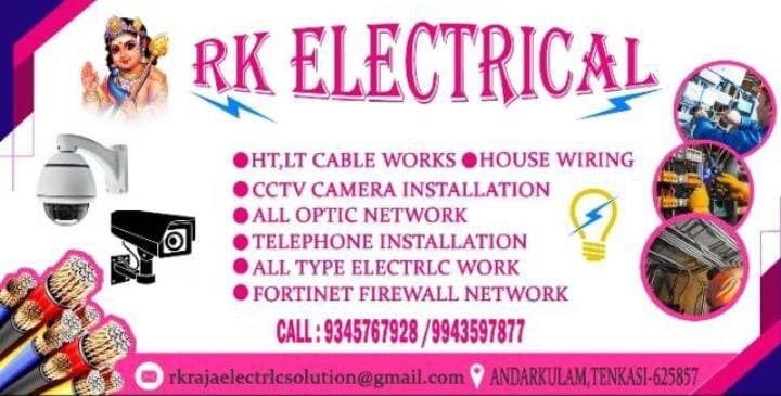RK Electrical is promoted by T.Raja at Tenkasi. We work hard to provide excellent customer service to all our clients.
