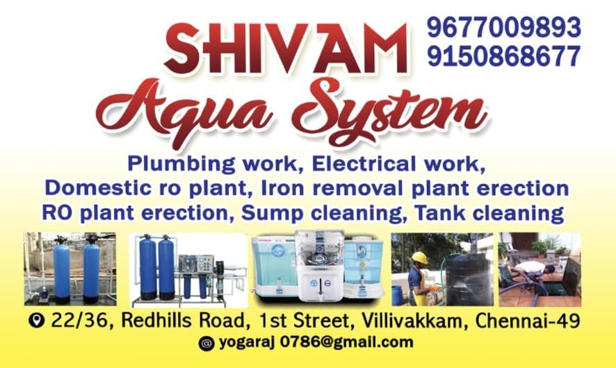 சென்னையில் உங்கள் நம்பகமான ஒரே சர்வீஸ் சென்டரான சிவம் அக்வா சிஸ்டத்திற்கு உங்களை வரவேற்கிறோம்!
