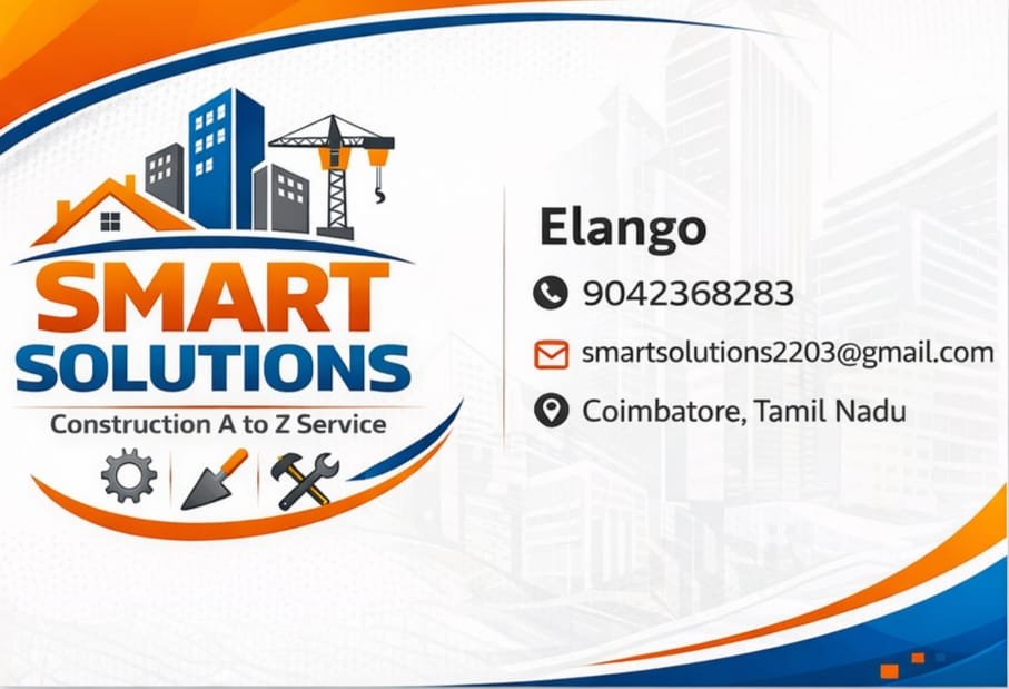 கோயம்புத்தூரில் கட்டுமானத்திற்கான உங்கள் நம்பகமான ஒரே நிறுவனமான ஸ்மார்ட் சொல்யூஷன்ஸுக்கு உங்களை வரவேற்கிறோம்!
