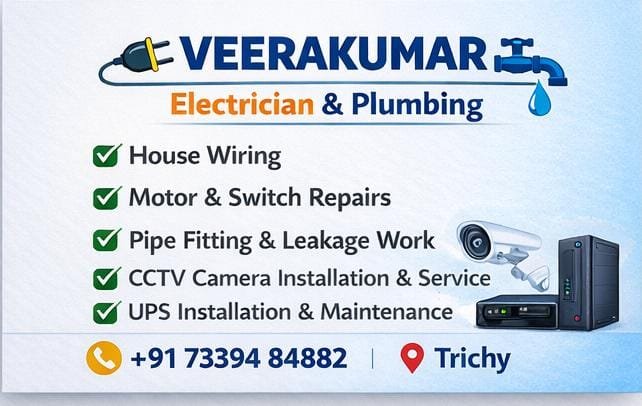 Veerakumar Electrician & Plumbing – Trichy’s Trusted Electrical & Plumbing Service Partner!