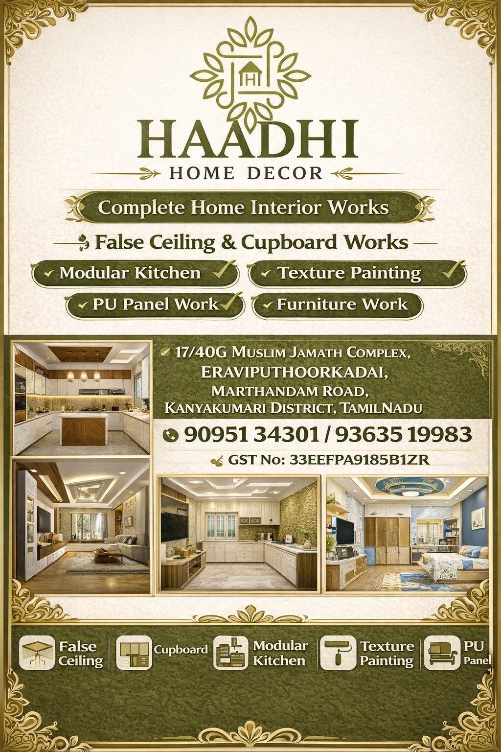 Haadhi Home Decor is promoted by Kasim at Kanyakumari. We work hard to provide excellent customer service to all our clients.