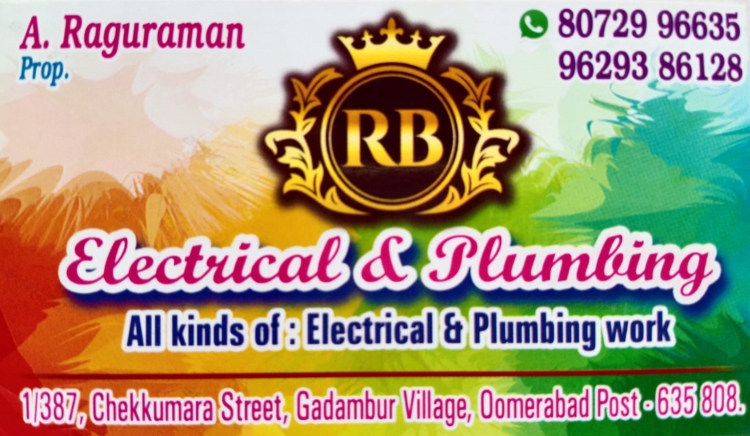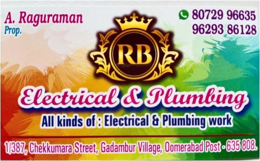 RB Electrical & Plumbing is promoted by A.Raguraman at Oomerabad. We work hard to provide excellent customer service to all our clients.