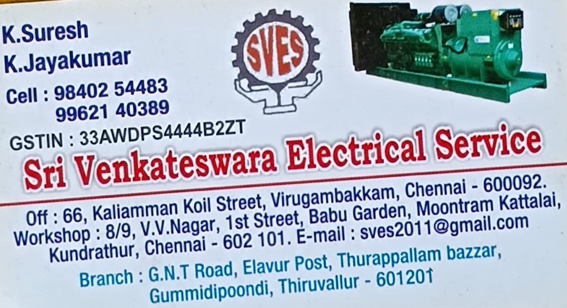 Sri Venkateswara Electrical Service is promoted by K.Jayakumar at Thiruvallur. We work hard to provide excellent customer service to all our clients.