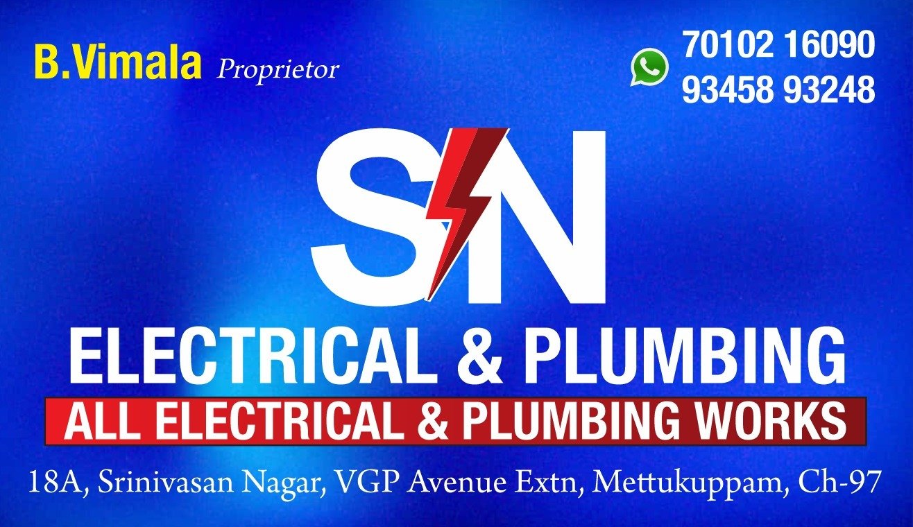 SN Electrical & Plumbing is promoted by B.Vamala at Chennai. We work hard to provide excellent customer service to all our clients.
