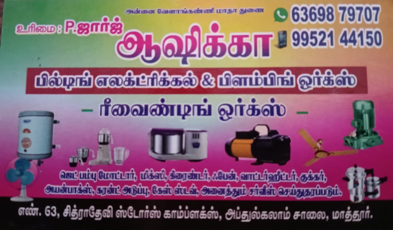 ஆஷிக்கா பில்டிங் எலக்ட்ரிகல் & பிளம்பிங் ஒர்க்ஸுக்கு உங்களை வரவேற்கிறோம்!